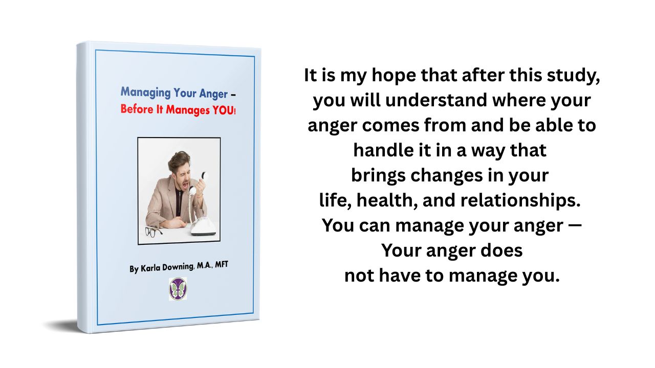 Do you struggle with controlling your anger? Has your anger caused problems in your marriage, family, job, friendships, and/or health? Would you like to learn how to manage your anger to stop the negative affects you are experiencing?